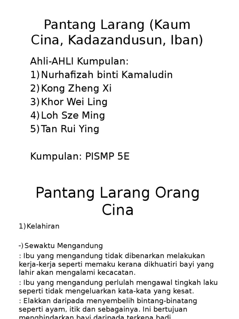 Pantang larang orang iban sewaktu mengandung. Nor shahida seberi kelas akademik. Draf pantang larang kematian kaum iban semasa.