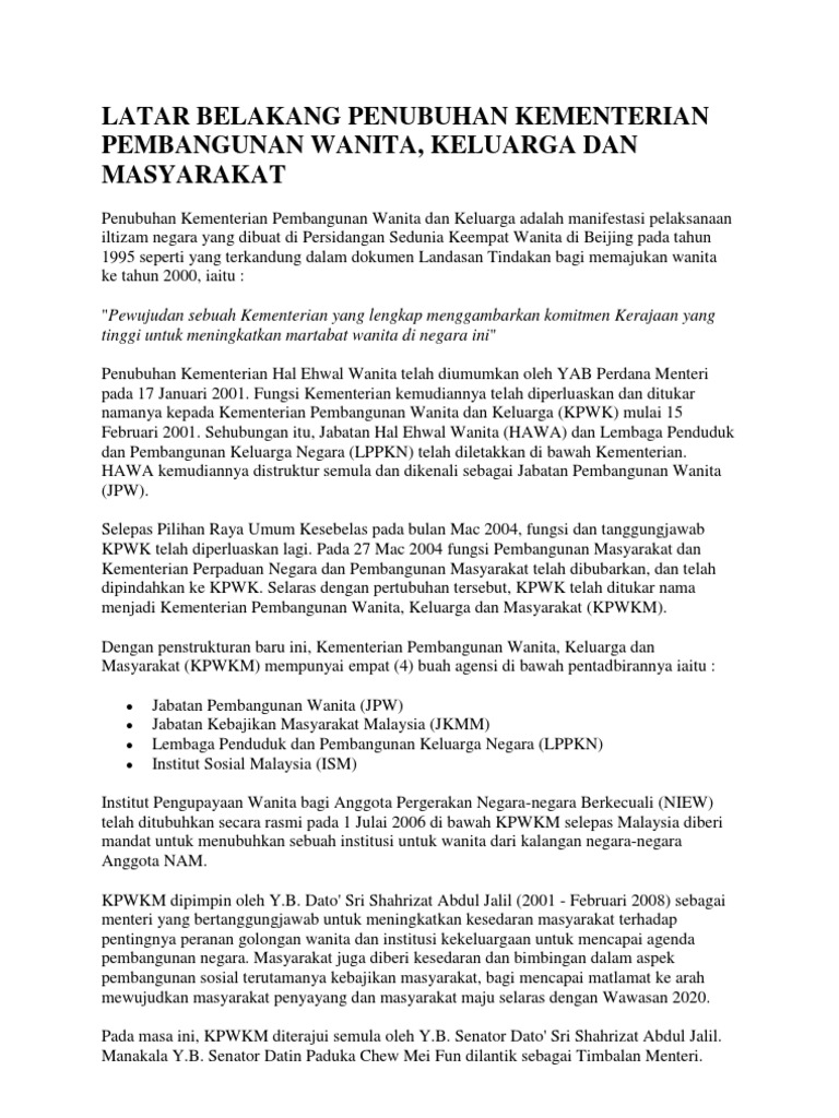 Kementerian Pembangunan Wanita Keluarga Dan Masyarakat Pdf